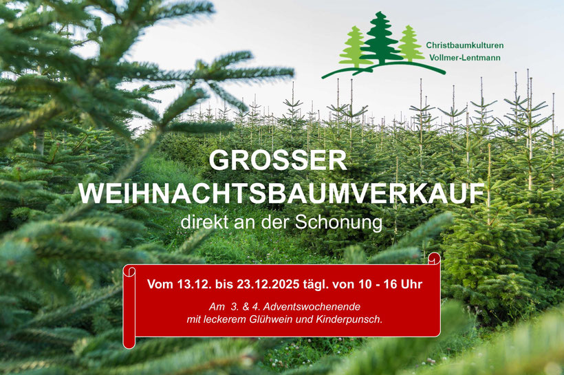 Wir verkaufen unsere Bäume direkt an der über 10 Hektar großen Schonung in Müschede.